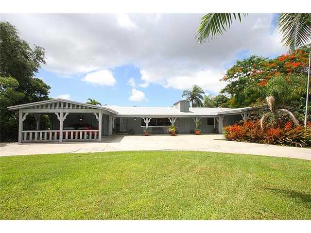 Expansive 4/3 pool home on deep 1.06/acre lot remodeled and expanded in the 90's features high tongue and groove ceilings and enjoyable open spaces. Fireplace in living, formal dining, huge kitchen w/dining counter and lots of storage. Master has adjacent extra room, large bath. French doors lead to a covered terrace poolside, great chickee hut. metal roof, 2 carports. Prime Pinecrest schools. Seize the opportunity to remodel, expand or build your dream home in an area of much more expensive properties!