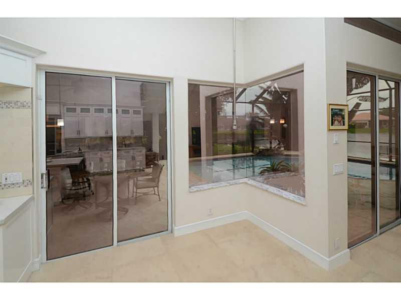 Lottery winning 1/4 acre lot with extraordinary lake to golf views. 4BR/3BA plus den. Elegant 24" porcelain tile in the social areas and solid Brazilian Cherry wood flooring in the bedrooms. Totally renovated & reconfigured kitchen w. quartz counter tops , high end stainless steel appliances, double oven, 42" cabinets, lighted display cabinetry and under-cabinet lighting. Totally renovated bathrooms. Screened & covered patio and pool. The roof is only 2 years old. Accordion & panel shutters.