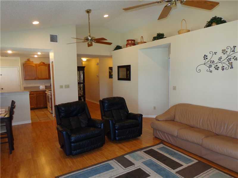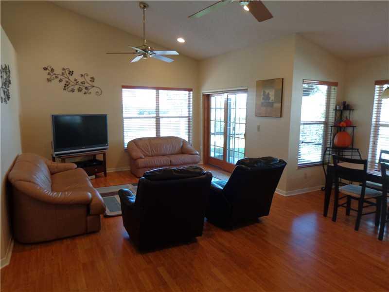 THIS LOVELY OPEN & AIRY HOME IN SOUGHT AFTER FOREST RIDGE IS CLEAN AS A WHISTLE AND YOU MUST SEE IT!!!!A LONG LAKE VIEW TO BE ENJOYED FROM YOUR BEAUTIFUL PAVER PATIO~FENCED BACKYARD~FRESHLY PAINTED WITH NEUTRAL COLORS~3 YEAR OLD TRANE A/C~VOLUME CEILINGS~ WOOD KITCHEN CABINETS WITH BREAKFAST AREA~FANS IN EVERY ROOM~WOOD LAMINATE IN ALL BUT ONE ROOM~DUAL SINKS AND LARGE SHOWER IN SPACIOUS MASTER BATH~SPLIT FLOOR PLAN~LARGE MASTER BEDROOM~CONVENIENTLY LOCATED NEAR 595~EXCELLENT A RATED SCHOOLS
