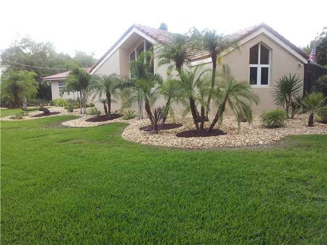 Gorgeous, sophisticated home, meticulously updated and perfected. Tropical paradise with lushly landscaped acre, in quiet, secluded neighborhood, close to everywhere you need to be. Home boasts the finest details with crown molding, porcelain floors and p lantation shutters throughout. Updated kitchen and baths, split plan, large, light-filled family room and very open floor plan. Large Master has 2 walk-in closets, sitting area, overlooking screened patio, unscreened pool/spa. Very private and special!
