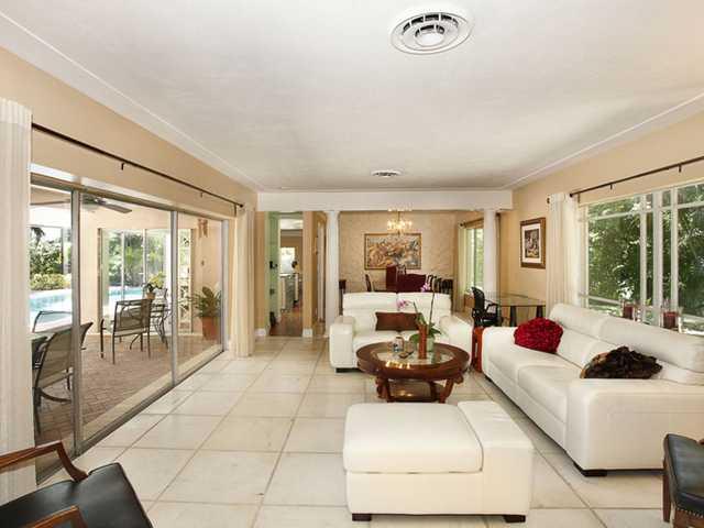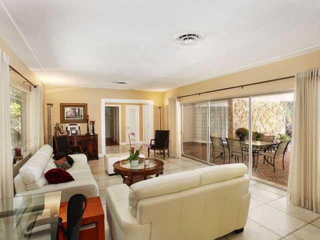 Warm updated home set around a lagoon shaped pool and patio with a wonderful under roof area to enjoy our tropical lifestyle. The kitchen opens to a large family room. Two nice sized bedrooms share an updated cabana bath with marble floors and glass bloc k. The spacious master has a sitting area and his & hers walk in closets and an updated bath with Jacuzzi tub, separate shower, bidet & toilet w extensive use of glass block & marble floors. Excellent schools. Immaculate condition! 2 Blks W. of Howard Dr.