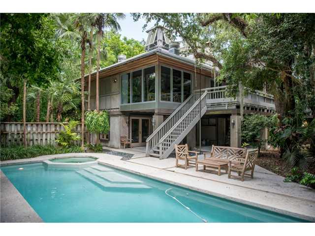 Aptly named "The Tree House" and located in gated & historic "Camp Biscayne" just steps from the Grove village center. Rustic modern architecture with walls of glass that bring in natural light and allow views of the gardens creating serene living spaces. Renovated baths & spectacular chef's kitchen. Outside you will find a magical pool area surrounded by a natural tropical hammock & covered porches encircling the home that are reminiscent of "Old Miami". Minutes from downtown, MIA and the beaches.