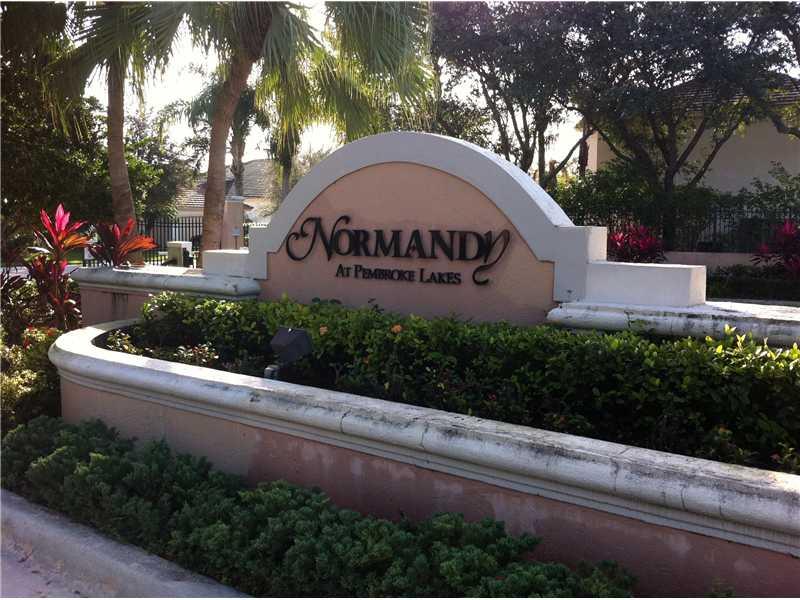 CHARMING 3 BEDROOM, 2 BATH HOME IN GATED COMMUNITY IN HEART OF PEMBROKE PINES, NORMANY AT PEMBROKE LAKES. VOLUME CEILINGS IN LIVING AREA & KITCHEN, PERFECT FOR ENTERTAINING- KITCHEN OPEN TO LIVING/FAMILY ROOM, LARGE BREAKFAST BAR AND EAT-IN KITCHEN. SPAC IOUS MASTER BEDROOM WITH TREY CEILING. ENCLOSED PATIO, NEWLY PAVED DRIVEWAY, HURRICANE SHUTTERS. COMMUNITY POOL, VERY LOW MONTHLY MAINTENANCE INCLUDES CABLE AND SPRINKLER SYSTEM.