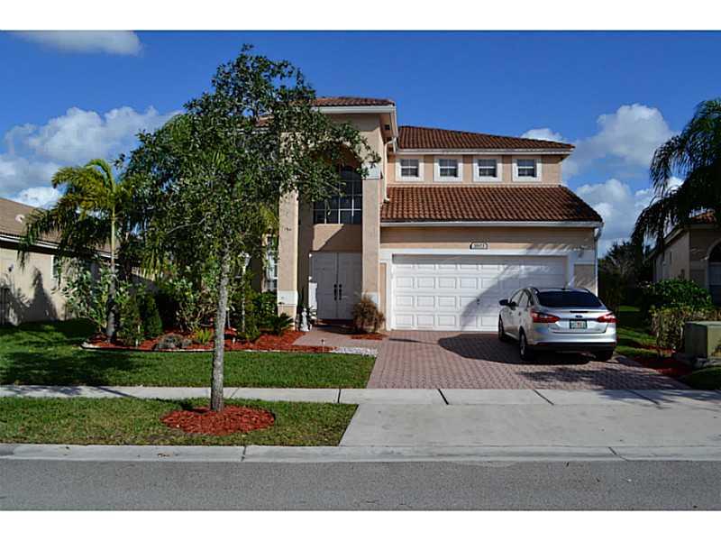 Beautiful 2 story home inside Bimini Bay within Gated Pembroke Falls. The home features one bedroom and bath in the first floor, 3 bedrooms, 2 bath upstairs, volume ceilings, tile throughout the first floor, kitchen with corian countertops and center isla nd, laundry room, crown molding, master bath with spa tub, walk in closets, storm shutters.