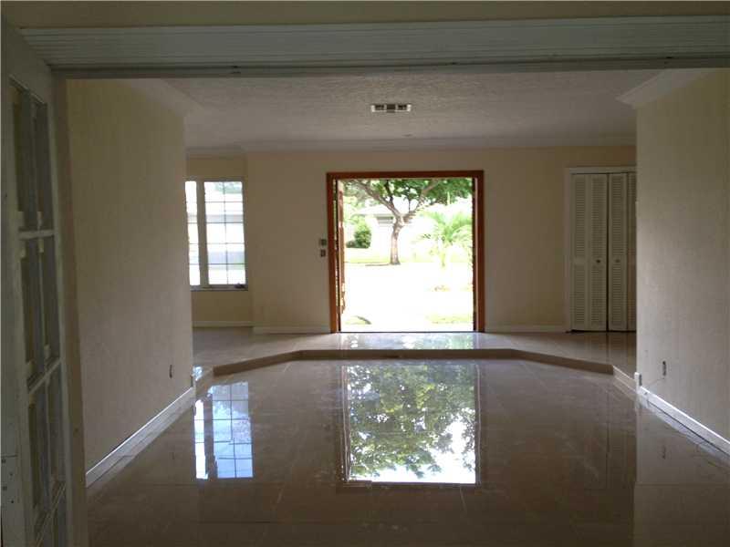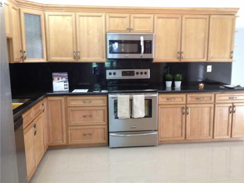 Gorgeous Waterfront Pool Home in great friendly neighborhood. 4/2 W 2 car garage & separate laundry room. Totally Renovated with brand new gleaming porcelain tile throughout, new carpet in the bedrooms, new stainless steel appliances and granite counter t ops with beautiful wood cabinets in large eat in kitchen. Master has beautiful cabana bath with office adjoining master. Huge Fl room with beautiful French windows and doors overlooking the tranquil setting of the sparkling pool and water. This is a gem!