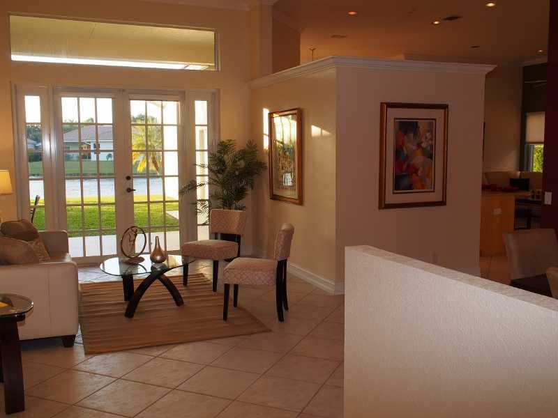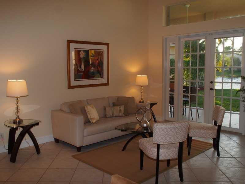 QUAINT FRONT PORCH LEADS TO VOLUME CEILINGS AND AMAZING WATER VIEWS! 4 BEDROOM, 2.5 BATHS HAS SPACIOUS FAMILY ROOM, SUNNY BREAKFAST AREA, CABANA BATH, CROWN MOLDINGS AND KITCHEN WITH WOOD CABINETS. MASTER SPA BATH WITH JETTED TUB. FRENCH DOORS LEAD TO SPA CIOUS LOT LARGE ENOUGH FOR A POOL OR PLAYSET. SERENE WATER VIEWS. WALK TO COMMUNITY POOL AND SPRINKLER TOT PLAYGROUND WITH PARK. GATED COMMUNITY CLOSE TO LIBRARY AND "A" RATED SCHOOLS. ACCORDION SHUTTERS,NEUTRAL COLORS, TILE, NEWER A/C, RECENTLY PAINTED.