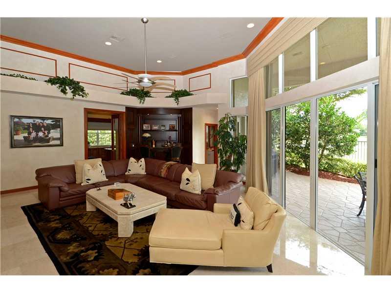 Pride of ownership shows in this immaculate custom estate with beautiful golf views* home includes a huge playroom/billiard/theater room & office/den* Original owner's* 1st time on market*updated kitchen* 2 bars, 1 is wet* Built ins* Laundry room with wal k in closet & ceramic sink* Accordian hurricane shutters* marble flooring in living areas * crown moldings * 8 lots of closets* heated pool/spa with baby fence * Circular pavered driveway w 3 car garage complete w garagetek system