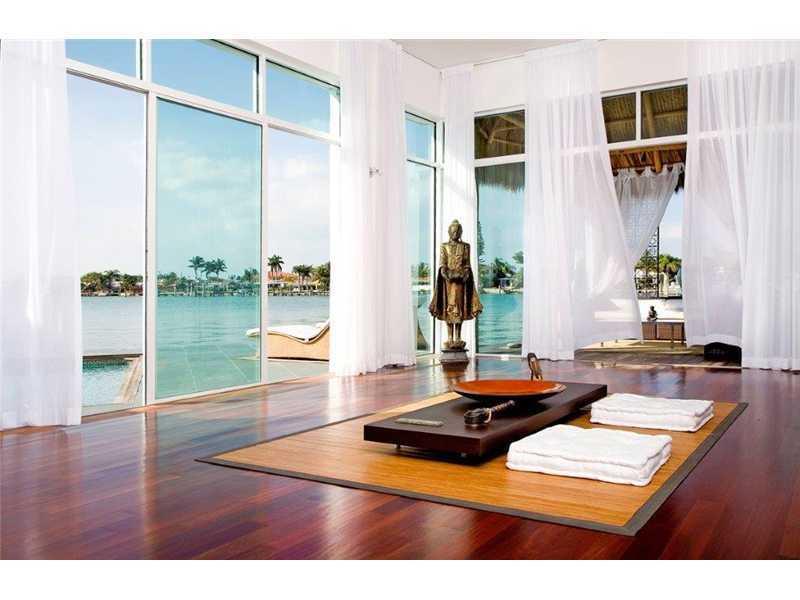MODERNIST DREAM: Gated Biscayne Point wide bay stunner. 3 bedroom/3 bath private cul-de-sac home surrounded by 370 ft of glistening Biscayne Bay. The most sensational interior space with 25 foot ceilings, 1500 sf spa, indoor Jaccuzi, sauna & yoga studio. Luxurious details are in abundance with exotic wood floors, private cinema & more. This property is perfect for entertaining, sunset watching and docking that well prized yacht which comfortably completes the picture of this stunning home. A must see.
