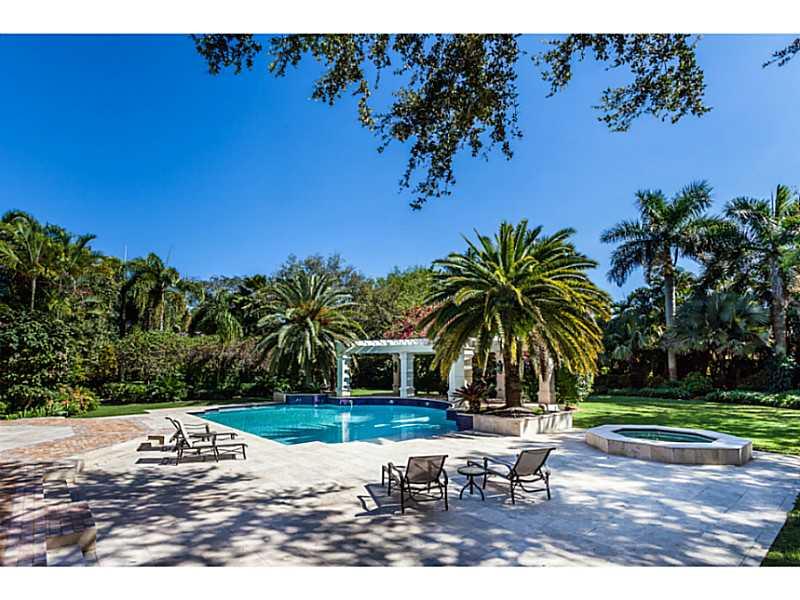 Enjoy this beautiful Pinecrest home on a quiet tree-lined street. This private and gated home is filled with exquisite finishes including travertine floors with mosaic inlay designs, a formal living and dining rooms, a chef's kitchen with high-end applian ces, a large family room, and a master suite with his and her walk-in closets, and a spa-like bathroom. The home is perfect for entertaining with a pool, Jacuzzi, 2 covered patios, and a huge backyard.