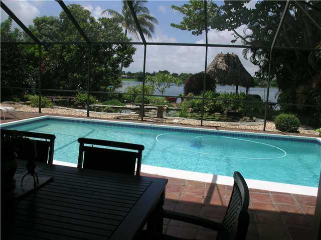 Entrance greets you w/serene. Lake Views!Spacious Living Rm,Large Updated Kitchen w/Wet Bar facing the Family Rm, split plan 1st.Floor w/2 bedrms/1 bath in 1 side. Separated Master Ste w/Luxury Bath facing the pool/lake. 2nd. floor has a Grand Rm. for ent ertainment w/balcony facing lake, 3 bedrooms/1 bath. Gas range/water heather/dryer>Gas generator! Revel in great outdoor entertaining w/screened pool, gas barbecue grill,fish pond, tiki hut>lake access by a sandy bch.Aventura Charter K-8(some exceptions)