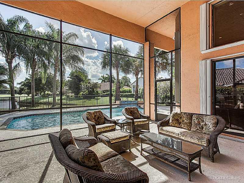 WATERFRONT TRUE 4 BEDROOM WITH FORMAL LIVING & EXTRA LARGE DINING ROOM. NEW OPEN KITCHEN WITH GRANITE COUNTERS, BUILT-IN WINE RACK, WALL OVEN/MICROWAVE, PANTRY & ADJOINING FAMILY ROOM. NEW HIS/HER MASTER BATH WITH WHIRLPOOL TUB & BIDET. LOTS OF WINDOWS TO ENJOY THE LOVELY POOL & LAKE VIEWS. HUGE SCREENED PORCH. NEW IMPACT FRONT DOOR. NEW HOT WATER HEATER. STORM SHUTTERS. ROOF & A/C 2001. BUYER MUST JOIN COUNTRY CLUB. HOA INC. CABLE, INTERNET, ALARM, 24 HR STAFFED GATE/SECURITY