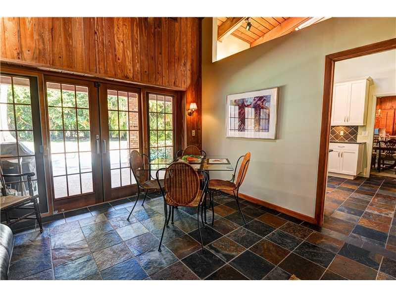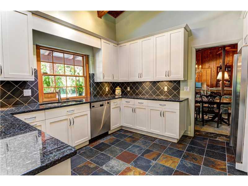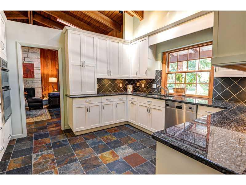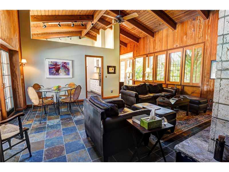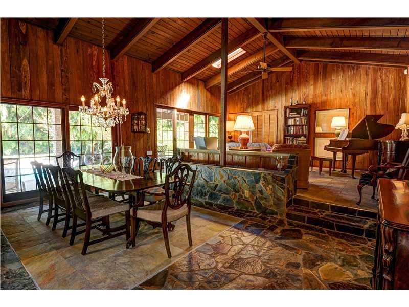 First class house on First class street in First class Devonwood. Architecturally exciting with high tongue and groove ceilings, fireplace, great use of wood, new kitchen, slate and porcelain floors,and deep lush yard. Split plan with separate master and other three bedrooms in family room wing. A great house for entertaining and comfortable family living. A touch of New England and a touch of Colorado in the heart of Pinecrest. Seller's Disclosure and Survey attached.