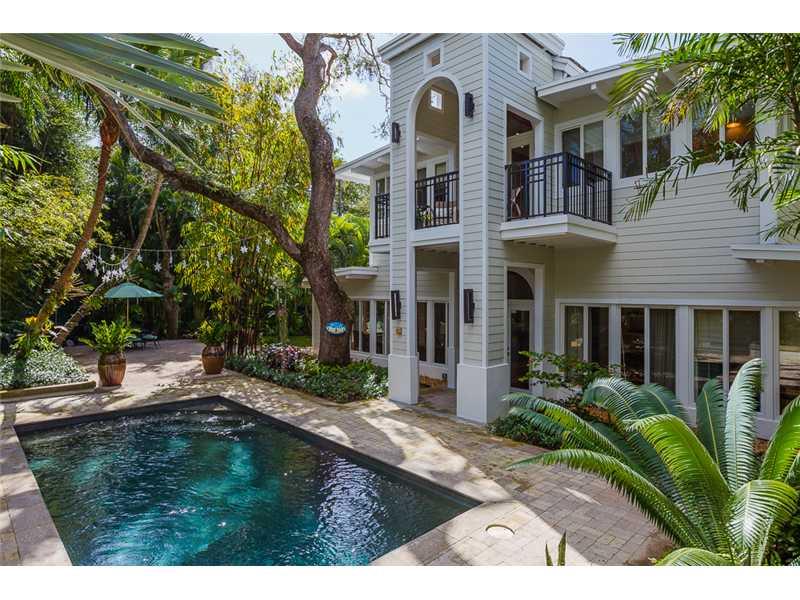 The reason people move to Coconut Grove is for fabulous houses like this. Evoking a cool Caribbean vibe, this home is a wow from the moment you step foot in the door. Architectural details abound. Numerous updates include a stunning kitchen with Neff ca binets & fine appliances, gorgeous baths, built in bar, California closets, impact windows, generator, mosquito system, lush landscaping & refurbished pool. Bonus room for wine. Gated with entry on St Gaudens or Bayview. This is a VERY SPECIAL HOME