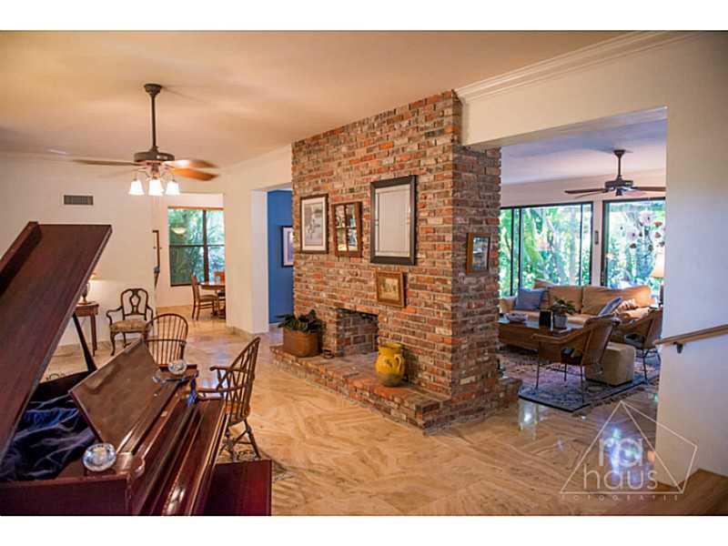 Move-in ready centrally located Coral Gables home on highly desirable Street close to The University of Miami! Mid-century charm with updated kitchen and baths. Beautifully restored wood floors in bedroom area and marble floors in social areas. Double- sided brick fireplace gives warmth and ambiance to living and family rooms and enjoy the adjacent serene covered deck surrounded by lush landscaping. Indoor laundry room + bonus room. Freshly painted inside & out, this house is ready to be your new home.