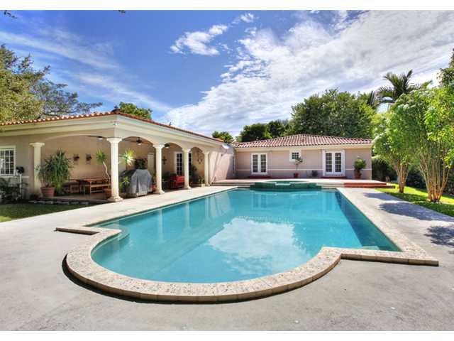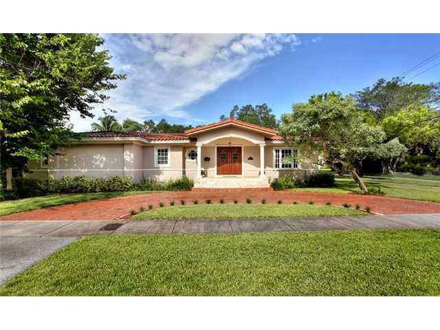 Marvelous 1950s Coral Gables home, virtually rebuilt in 2001 w impact wndws/drs, new roof & a completely reconfigured/expanded flr plan. Foyer entry; elegant formal Living Rm w working fireplace & antique mantle; lg frml Dining Rm; spacious Kitchen; Famil y Rm w French drs that open to covered pool patio. Master BD w sitting rm, 2 huge walk-in closets & BA w double sinks & Jacuzzi tub;2 guest BDs w en-suite bath;maid's rm w/bath;hardwood flrs; detailed moldings/baseboards;2-car grg;50ft saline pool.