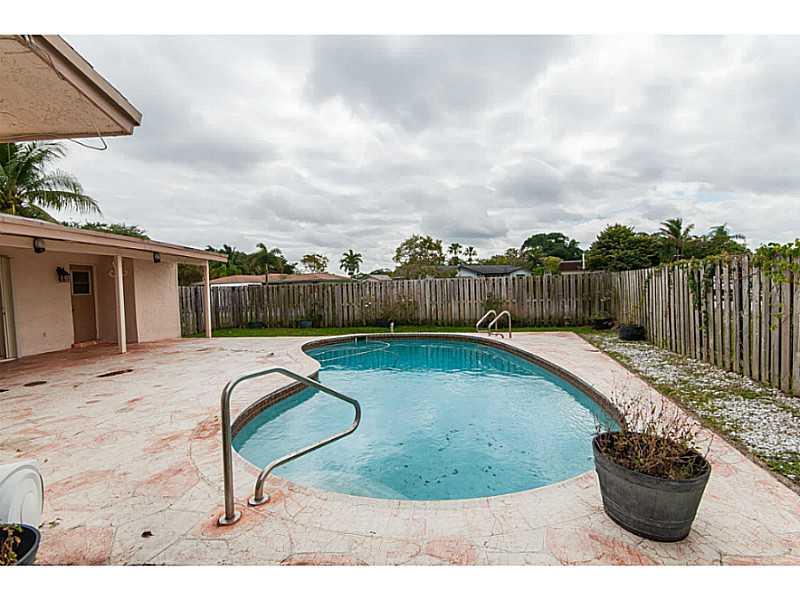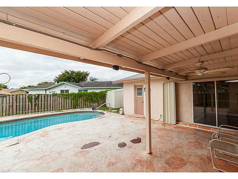 Spacious 3 bedroom 2 Bath, pool home on an oversized corner lot in a quiet neighborhood. 2 car garage with a new door, Split floor plan, master bedroom walk-in closet, large secondary bedrooms, both bathrooms have access to pool, Wood look ceramic tile th ru-out; crown moulding & chair rail; plantation shutters; accordion shutters; alarm system. Roof replaced 2008.Completely fenced yard and storage Shed. No HOA. Great Davie Schools. Ideal location close to colleges and shopping. Not a short sale or REO!