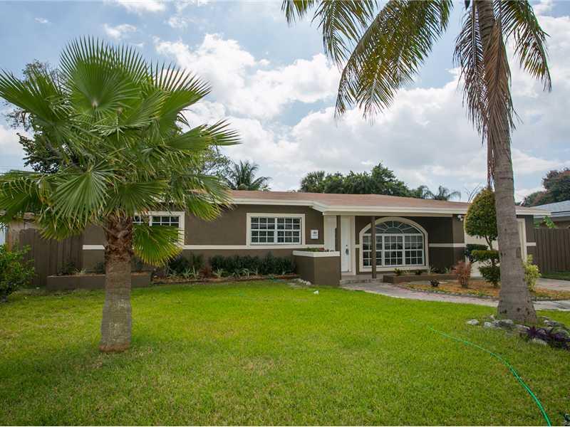 Newly updated home with great curb appeal with huge back yard. Kitchen has brand new custom made cabinets. Tile flooring in living areas. Bedrooms have chocolate wood flooring, each with own closet and "chair railing" trim on walls. Baths have new custom made vanities. Spacious living room with a division to the Florida room. Modern light fixtures. 1 car garage. Washer/dryer. Large back yard with many fruit trees. Lots of room for pool, playground, etc... Located just 1 block from major stores.