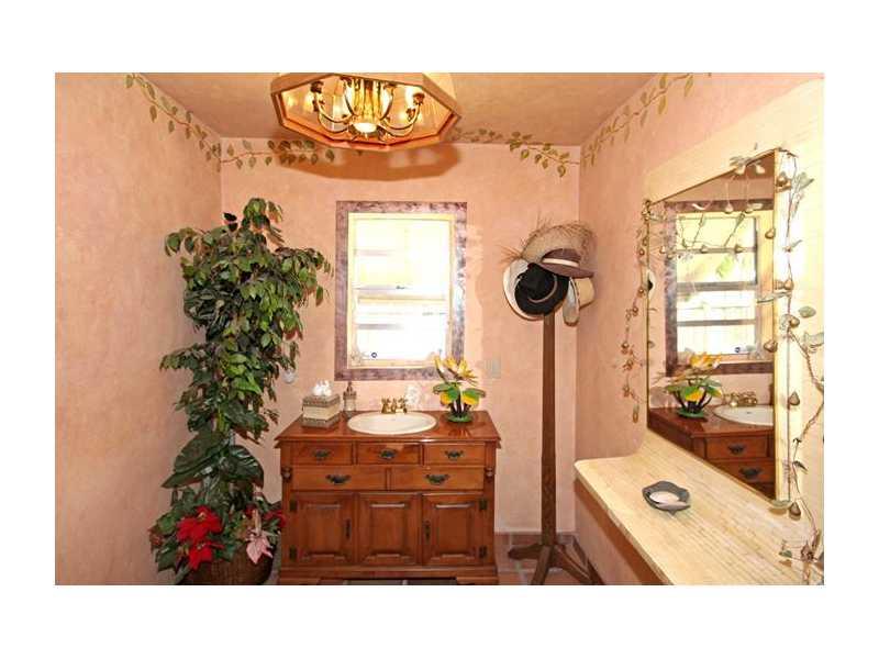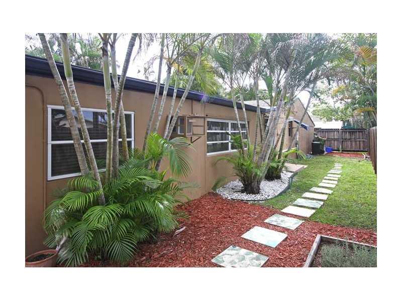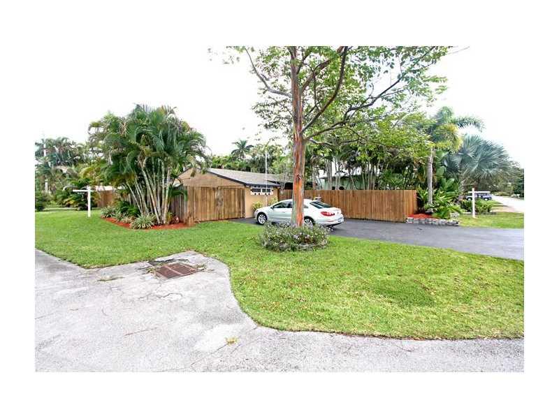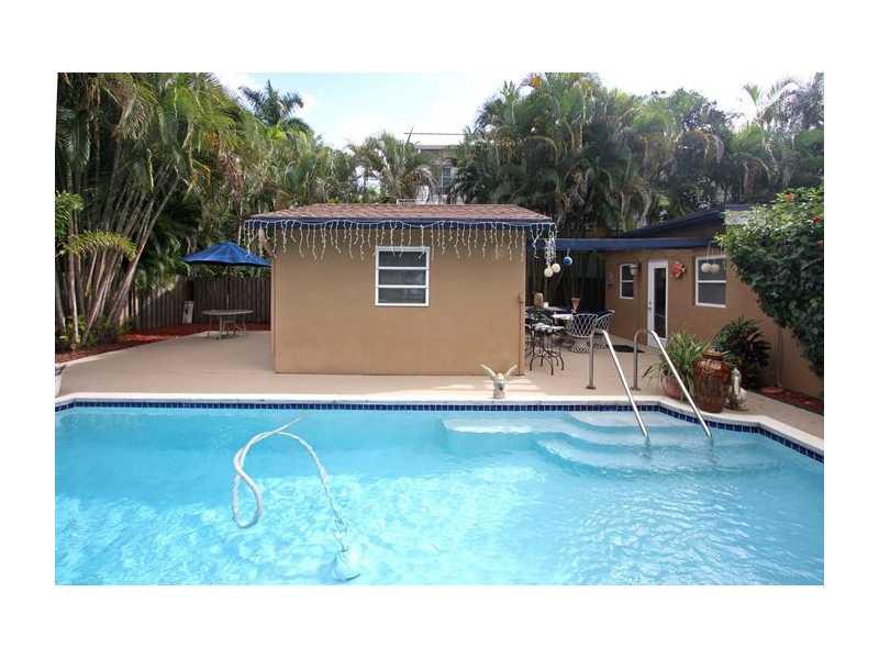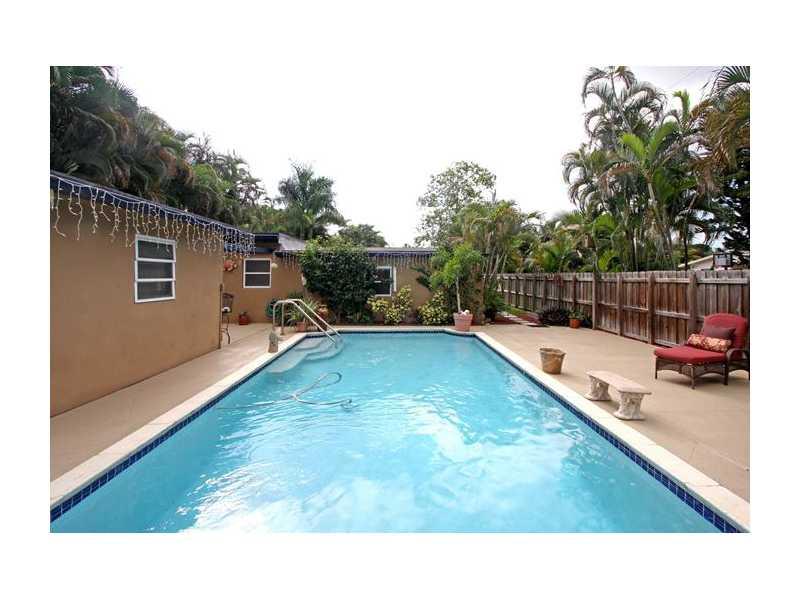 Tropical enclave of a classic Florida home with 4 bedrooms and 3.5 baths, set on an over sized corner lot. A compound hidden from the street by a wood fence, surrounds the expansive well maintained home. The home could be turn key with an optional furnitu re package. Polished tile and cement floors add to the island style of the décor complete with a renovated kitchen, new LG stainless appliances, roof and AC. Detached Cabana or hobby room and large pool are completely gated with tropical palms for privacy