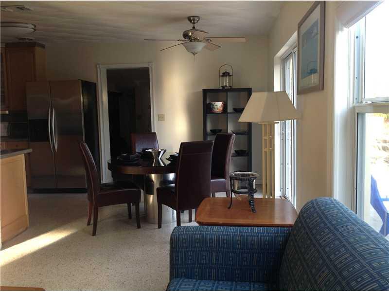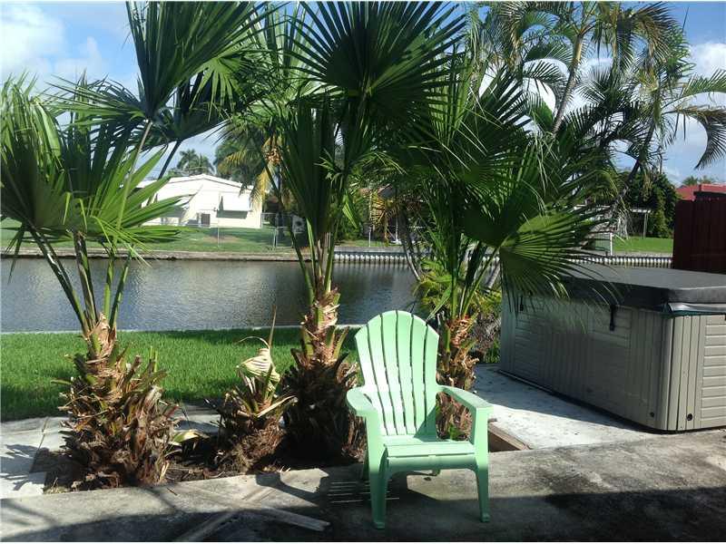 Updated 3 bed/2 bath plus den home. Den may be used as an office or 4th bedroom. Kitchen features wood cabinets,gas stove,concrete counter-tops,marble tile back-splash, stainless steel fridge & dishwasher. Terrazzo floors throughout.2nd bath has new wall tiles,slate tile floor & Jacuzzi.Laundry room w/washer & dryer. Gas water heater.Good sized backyard .Front patio seating area. Waterfront w/no ocean access,but great for kayaking or paddle boats.3rd bedroom has armoire,no closet.No closet in den