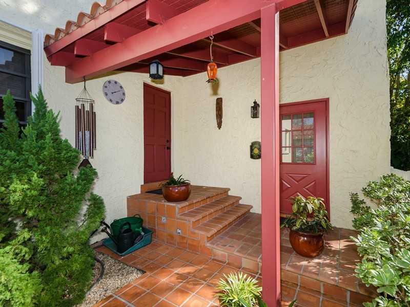 This Old Spanish home in the urban neighborhood of 'Gallery Row' is aesthetically pleasing to the eye & offers lots of colorful landscaping as a backdrop. Note the effect it will have on you as you walk throughout & find a fireplace, enclosed porch, arche s, tall ceilings, wood & clay floors, niches + a very handsome eat-in kitchen. It's floor plan is comprised of a 2/2 + den + semi-detached 1/1.