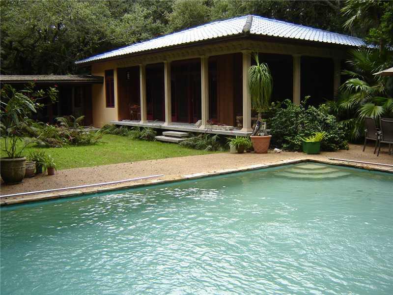 MINI KAMPONG in the heart of Pinecrest set back on a deep, lush acre studded with magnificent oaks,specimen palms & shrubbery. The original structure comprises 3 bedS/2 baths, terrazo floors & TNG ceilings. Two wings, each with approx. 1000 sq.ft., were a dded in 2005, with marble floors, peaked bamboo ceilings, impact windows & doors. The large Master Suite has additional space used as an office, but could serve as an extra closet or nursery. Beautiful garden & pool vistas complement this rare jewel!!!!
