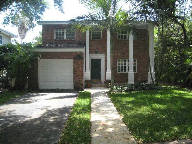2 story beauty in prime South Gables location. Updated white kitchen, bathrooms, Oak wood floors thru out zoned A/C, crown moulding, tile roof (4 yrs), 2/1 upstairs master & 2/1 downstairs. Well/SS. garage semi converted to laundry & storage x fld zone.