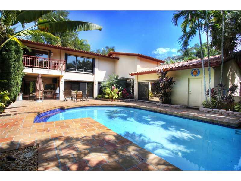 Beautiful Coral Gables outdoor pool home 5/4 baths w/very lush landscaping, gorgeous exotic tile & wood flooring. Large family room off eat-in kitchen w/wood cabinets & granite counters. Spacious formal dining. Fabulous master suite-great closet space w/s hower stall, whirlpool tub & balcony off the master overlooking the pool. Oversized lot & proximity to Riviera country club & lots of extra features - like mosquito abatement system, sprinklers, integrated surround sound in family rm. Come see this oasis.