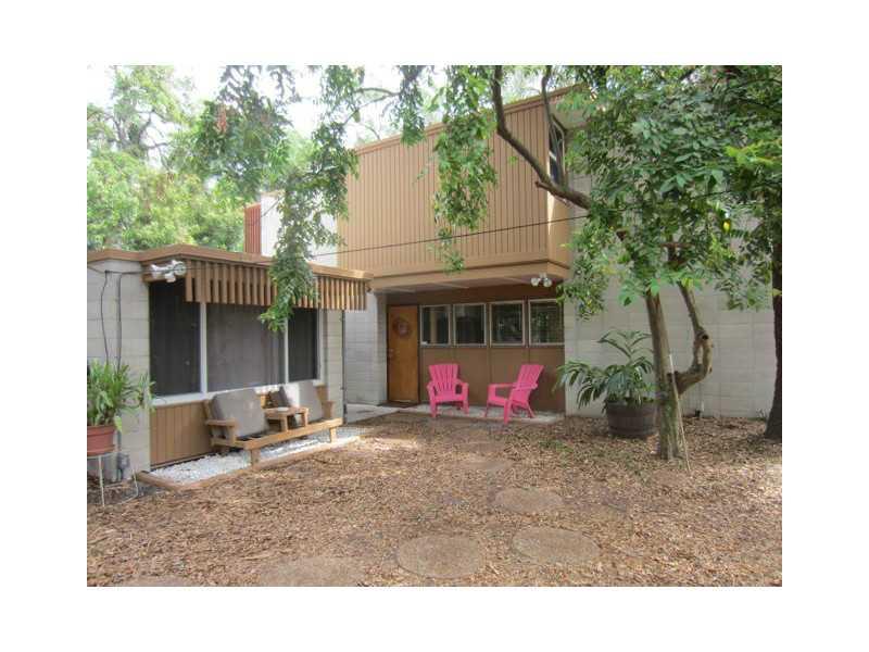 Mid-Century Modern classic, Chuck Reed Jr. designed, nestled among ancient Oaks, two story living room contains floating spiral staircase leading to the balcony of the loft bedroom & office. The interior/exterior is defined by exposed concrete blocks, wo od beams & floor to ceiling louvered windows enable no distinction between indoors and out. 2 bed, 1 bath cottage complete the site. Visit http://journals.fcla.edu/browardlegacy/article/view/76790/74361 - not subject to appraisal, cash buyer preferred