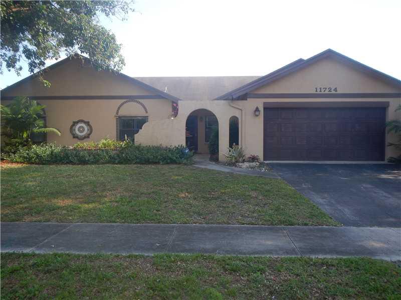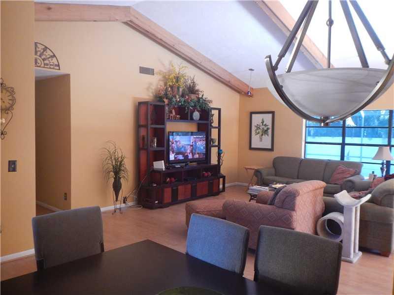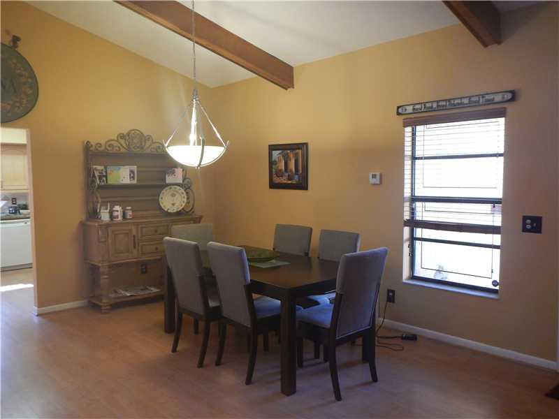 Beautifully kept home that features open foor plan with soaring ceilings exposing wooden beams. Laminate wood floors throughout the house and carpet in bedrooms. Upgraded kitchen w/ granite countertops and newer appliances. Both bathrooms have been upgar ded and new A/C unit. Home has tankless water heater. Releax in your pool & entertain on your over sized covered patio. Included hurricane shutters and garage features an A/C unit. No HOA fees, great neighborhood and A rated schools. Bring all offers