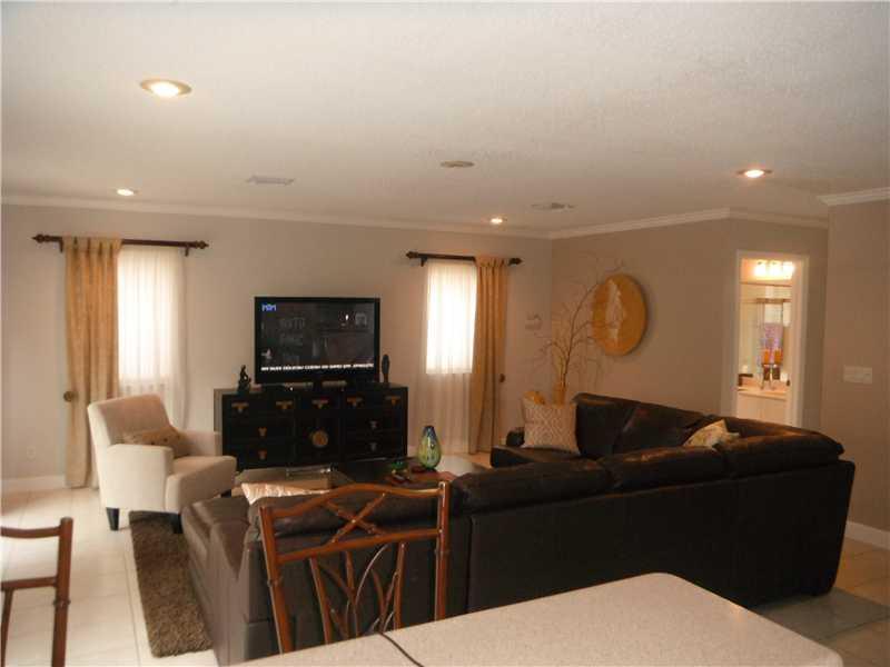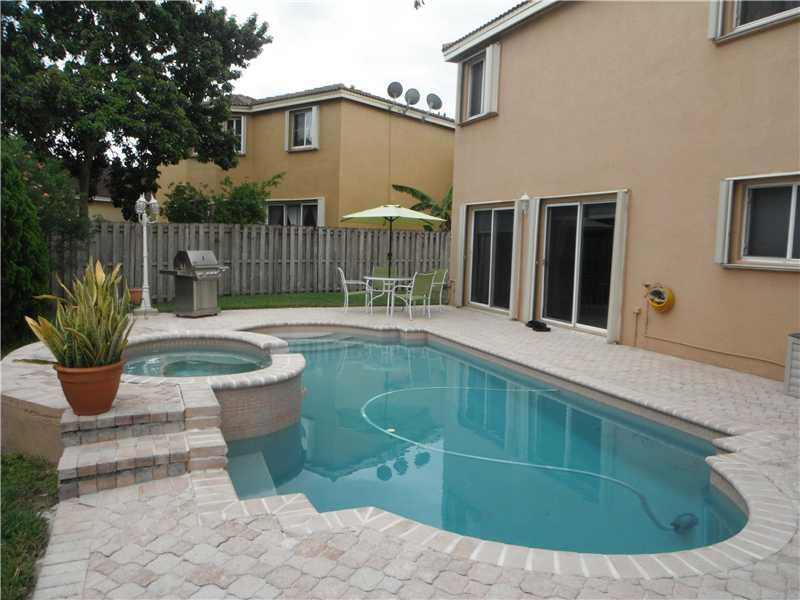 Beautiful home features bamboo wood floors (3/4" thick) in din/liv room combo as well as on staircase and 2nd floor. Kitchen with quartz counter tops, breakfast bar, & newer appliances (2013: refrigerator, oven, dishwasher, washer & dryer). Crown moldi ng. Accordion shutters. House recently painted. Heated pool (gas heater) and Jacuzzi. Fenced yard with sprinkler system. Garage with built in cabinets and window a/c wall unit. 5 ton a/c (2013 -- with 10 year warranty). Alarm system. Sep laundry room