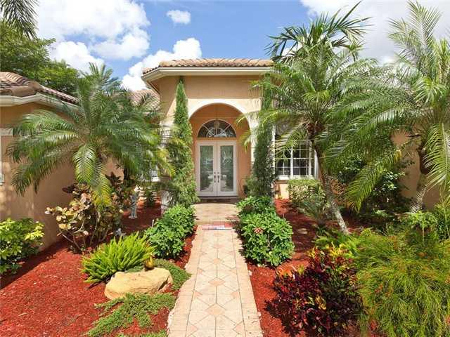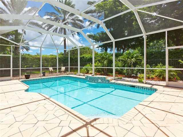 Custom Corner Pool home w 5BR/3.5BA plus Ofc/Den and a front yard water view is a must see! The Large kitchen w/granite countertops/SS appliances overlooks warm Family rm & Breakfast area and a soothing view of pool & patio. Master Suite has private sitt ing area w/french doors leading to pool, his & hers closets & more. Tray ceilings, arched doorways, accordion shutters, intercom, screened heated pool, walk to park & playground. "A" schools, mins from Cleveland Clinic, & Sawgrass Mills.