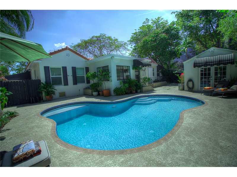 At the end of a cul-de-sac in Morningside's widest street, this historic home features vaulted ceilings, arched doorways, custom moldings and French doors. It includes a foyer, grand living room, Florida room, formal dining room, library and a guest house with bathroom and kitchenette. 2012 renovations include brand new 350 sq ft master bath with huge walk in closet and meditation room, new roof, 2 new AC, new impact windows, new kitchen and all new appliances. This home is one-of-a-kind in Morningside.