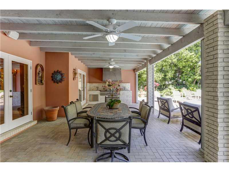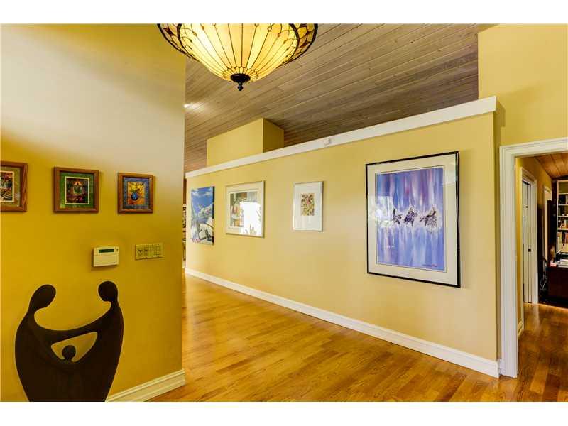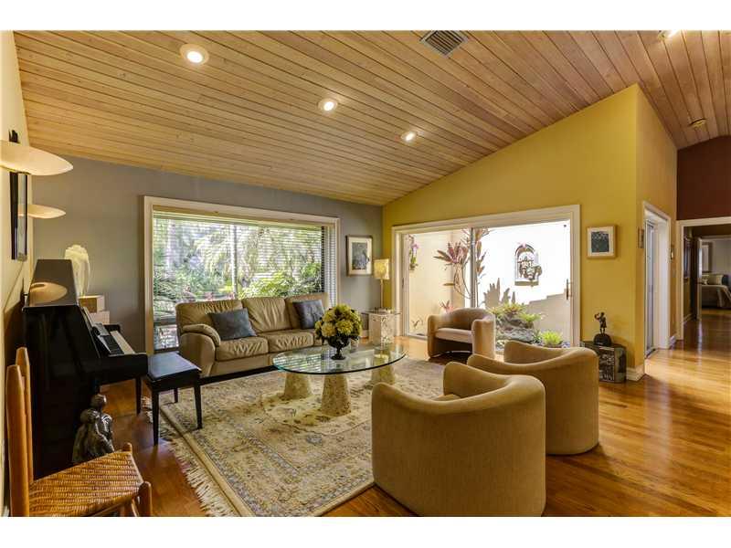 Beautiful contemporary 4/3 plus large ofc/study adjacent to master. Vaulted ceilings, skylights & all wood flrs emphasize the airy feeling. Sensational gourmet eat-in kitchen opening onto large family rm. The lush/private yard has gorgeous heated pool + J acuzzi + large covered patio w/new blt-in BBQ. Built by Stoker, the home offers split bdrms, master w/his/hers closets, master bath w/steam shower & Jacuzzi, fireplace, 3 zones AC, 30kw Generator, central vacuum, accordion hurricane shutters.