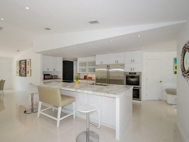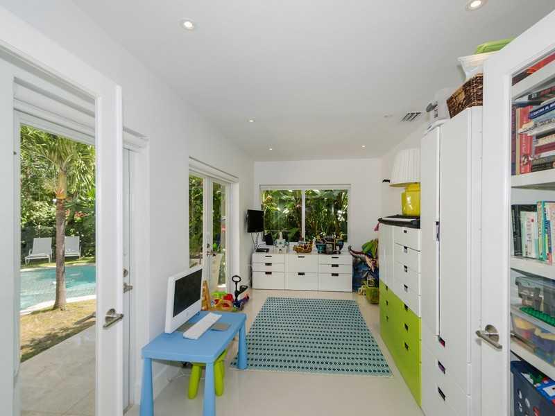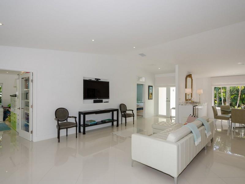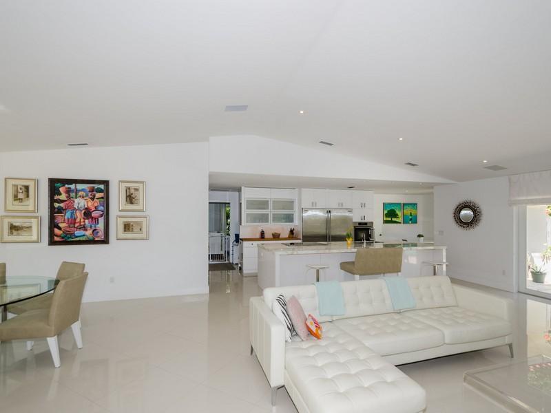 Bright, open and impeccable! This beautifully remodeled modern, one level, elevated home is perfect for family living on Key Biscayne. Vaulted ceilings and large windows welcome natural light & beautiful tropical views from every room. The spacious layout offers 5 BRs + Den. The oversized corner lot is lovely with mature landscaping, a pool and extra space for entertaining & kid's play. Walking distance from the restaurants, boutiques, Village Green & Yacht Club. Beach Club Membership included.