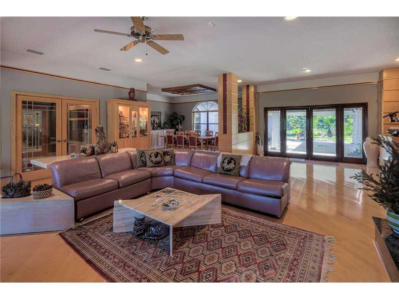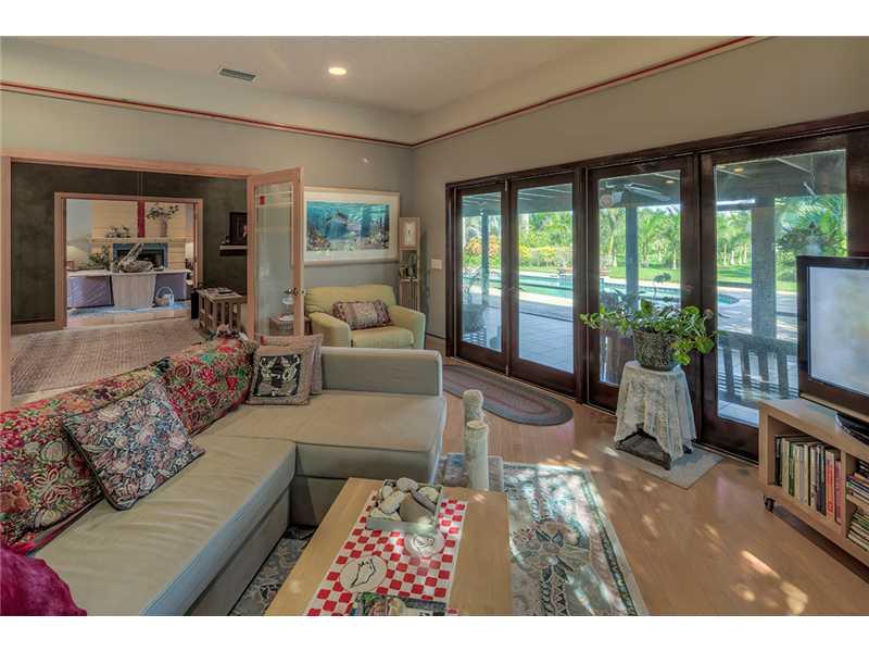 Peacock Estate features 4 Bedroom 3 Bathrooms in Sunshine Ranches SouthWest Ranches with Frank Lloyd Wright inspirations, Media Room, Formal Living Room, Eat in Large Kitchen (needs updating)open Family Room, Wood Floors & Large 2800 Sqare Foot Pole Barn could be converted to barn/stable or Guest Cottage, horses permitted near "A" rated Schools 15 miles west of Ft Lauderdale Great Location for Family Home Property appraised 12/2013. Lots of Potential! Amazing Lot, Garden & Landscaping. Must see.