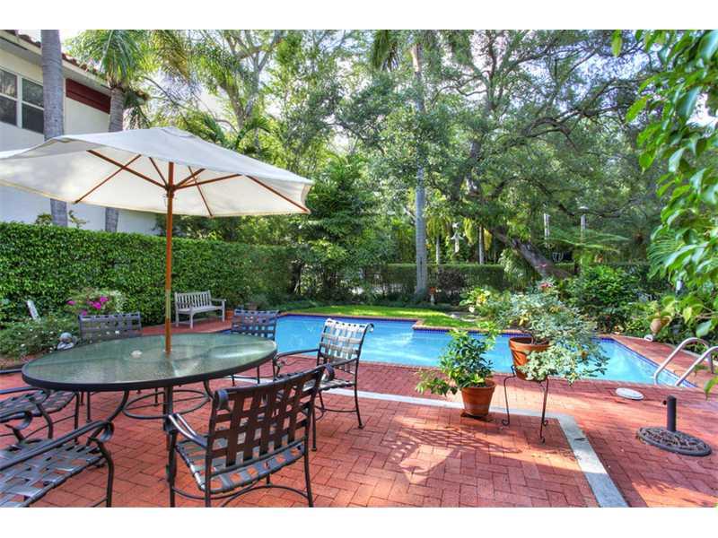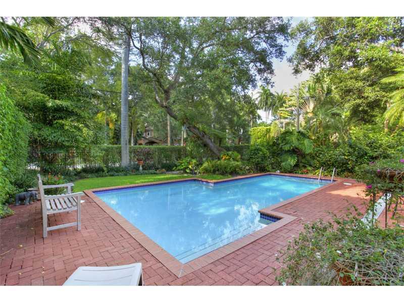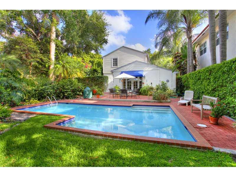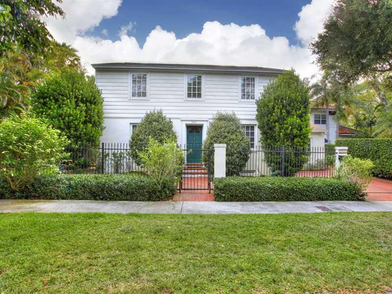 Elegant Colonial-revival on a quiet, lush street in North Coconut Grove. Formal living & dining room flank the classic foyer entryway with central staircase. Light-filled galley kitchen leads to family room with French doors that open to the pool and pati o. One bedroom on the main floor with en-suite bath & garden views + the Master Bedroom/Bath and an additional guest bedroom/bath are located upstairs. Impact windows/doors throughout, generously-sized laundry room & fully fenced property w gated entry.
