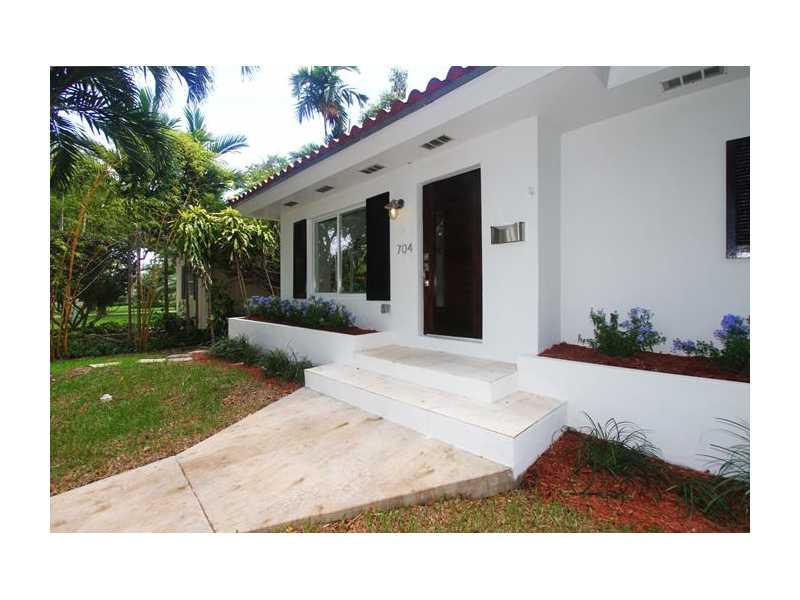 Beautifully renovated Gables home on prime, quiet tree lined street. 3BR/2BA, sunny open living spaces with wood floors, stunning new kitchen features solid wood cabinetry with an abundance of cabinet space, stainless appliances, quartz counter tops, fabu lous cooking island with bar seating, new baths, new septic, new plumbing, new impact windows, outdoor entertaining deck and expansive private gardens with plenty of room for pool. A perfect "10"!