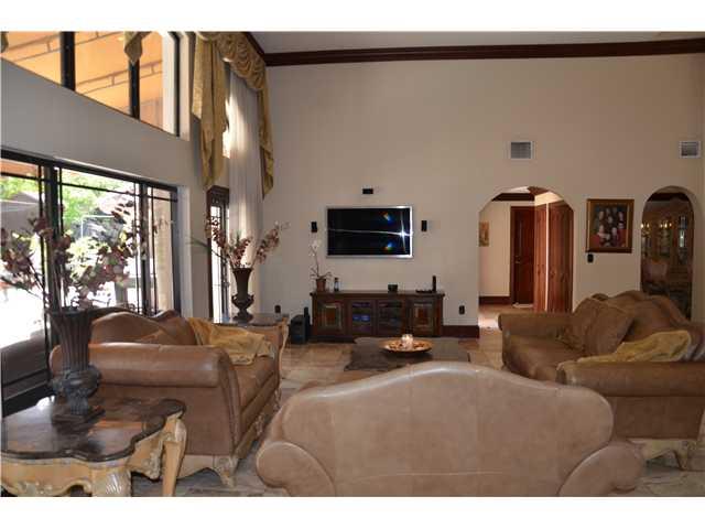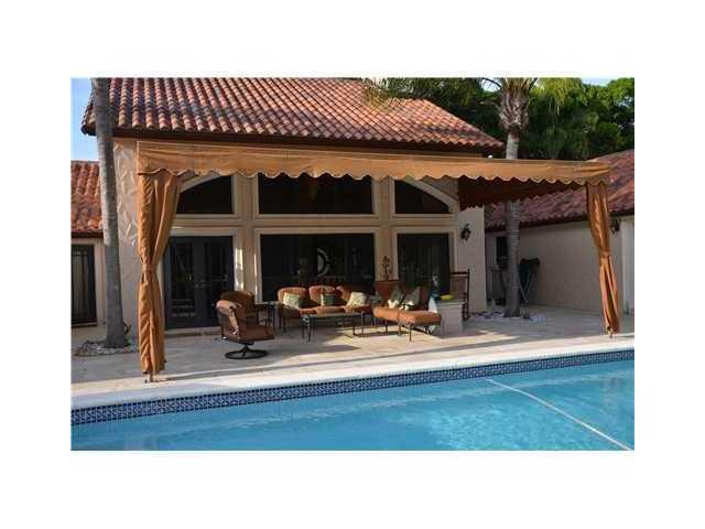 BEAUTIFUL MEDITERRANEAN STYLE 5 BED 5 BATH HOME BOASTS 16' CEILINGS IN MAIN LIVING AREA; LOTS OF NATURAL LIGHT; FOYER ENTRY, MARBLE FLOORING THROUGHOUT MAIN HOUSE & HARDWOOD IN BDRMS; HUGE EAT IN KITCHEN W/ISLAND; LARGE FORMAL LIVING & DINING RMS; 4 YEARS NEW BARREL TILE ROOF & IMPACT WINDOWS & DOORS; ELEGANT WOOD TRIM FINISH THROUGHOUT. SPARKLING POOL & BEAUTIFUL PATIO & YARD AREA PERFECT FOR ENTERTAINING. BEAUTIFUL FAMILY HOME SITS ON WALLED IN & GATED TROPICAL 36,154 SQ FT LOT. NOT A SHORT SALE.