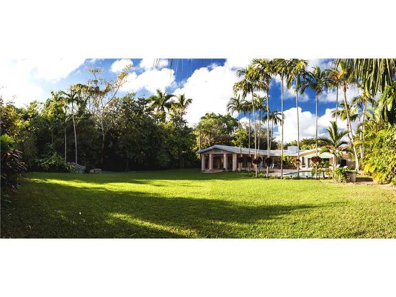 Trophy property in prestigious South Coconut Grove on a no-traffic street. Home with exquisite floor plan and French doors leads to pool and massive 25,000 sq ft private back yard. This home is high above sea level on a ridge and does not require flood insurance. Update existing house or build your dream home. Trophy property in trophy location! Neighborhood features private police patrol.(Potential to subdivide this lot 115 wide X 216 deep)