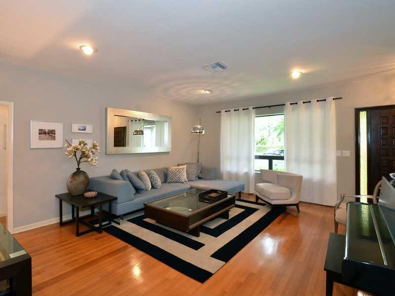 Meticulously maintained one-story 1950s gem on double sized South Coral Gables lot. This mod 3/3 has beautiful hardwood floors & an updated kitchen w/ stainless steel appliances. Spacious formal dining & living rooms w/ large Florida room w/ working bar. Great big yard w/ tons of fruit trees & deck perfect to entertain & BBQ. Two car garage w/ conversion. Centrally located to walk to new Ingraham, Sunrise, Jaycee & Merrie Christmas parks. Close to Sunset Elementary. Room for pool. Must see!