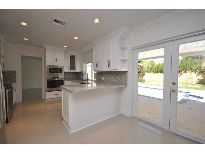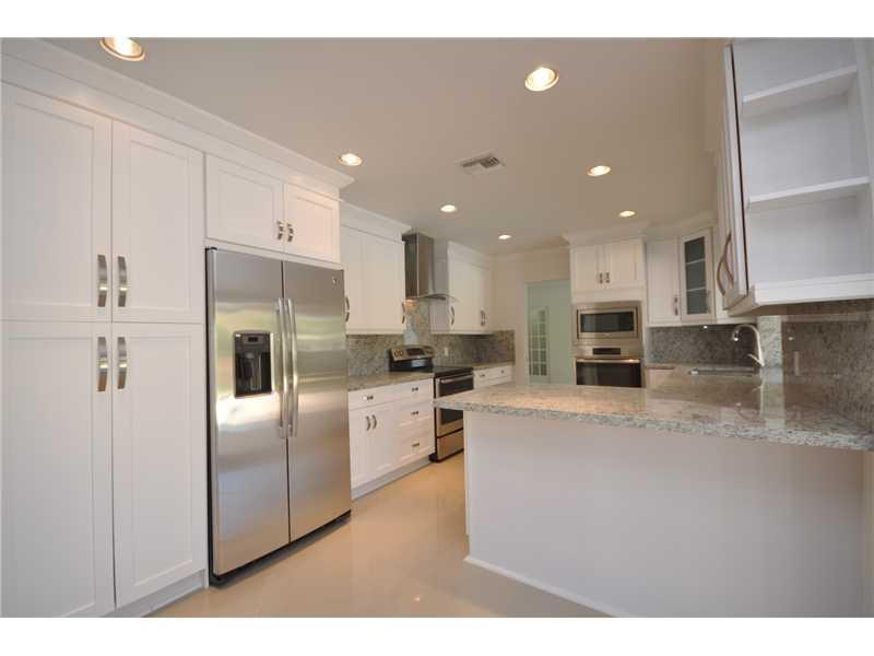 Tastefully & completely remodeled family home sits on half an acre. Beautifully bright with 4 sun-filled bedrooms, and 2 new sleek & modern bathrooms, each with double sinks. Kitchen, open to the family room, boasts thick granite countertops, double ovens , stylish hood, & wine cooler. Spacious terrace invites you to jump in the sparkling refinished pool! Gleaming floors, laundry room, hurricane impact doors & windows, new flat tile roof, 2-car garage & circular driveway, cap off this happy home!