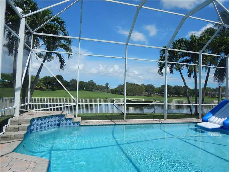 Beautiful, endless lake and golf course views. 4Brm + Bonus Room (can be an office or 5th bdrm), 3.5 Baths. Pool, large screened patio plus fenced yard. East exposure. Open kitchen w/island, tall cabinets, Wet Bar, pantry. New efficient A/C. Under vanity lights at baths, central vacuum. Huge windows to enjoy fabulous views. Terrific floor plan, 4-way split Brm. Circular driveway. Located in prestigious gate-guarded community close to everything, top rated schools and Universities. Low HOA dues.