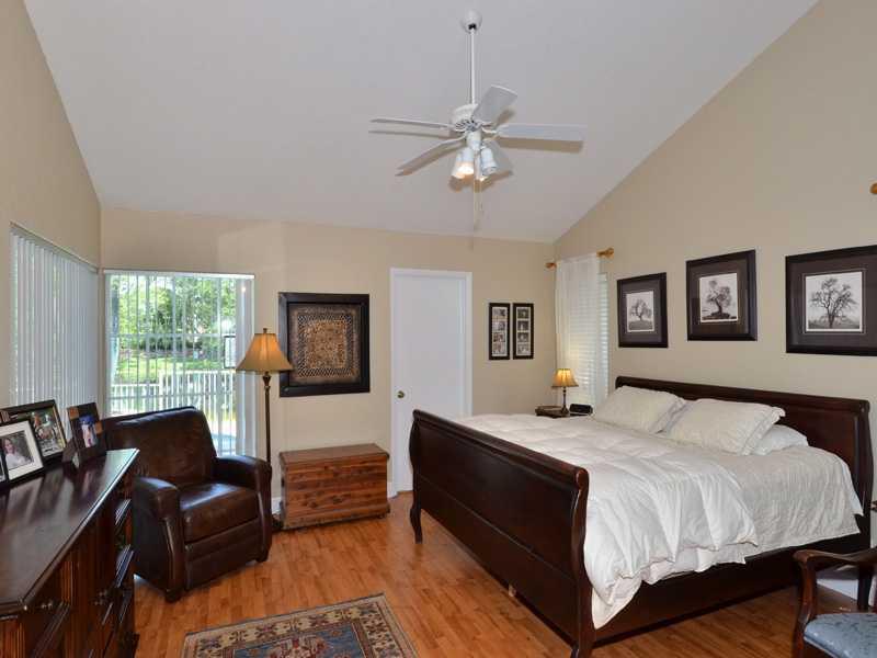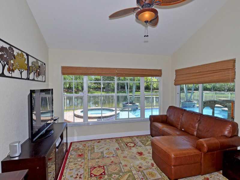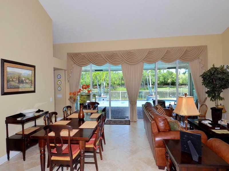 Beautiful, updated former Bianca model home in exclusive Laguna Springs II.Come to see this private lake view from covered patio&infinity-style pool with spa and palm trees.This home is located in one of the bigest lots in the neighborhood (10,837sqft).It features light & bright views, neutral tile throughout living areas, engineered wood floors in bedrooms, spacious kitchen with granite countertops,new appliances,roof(2010), water heather,pavered patios& more.Don't miss this great home.It won't last !
