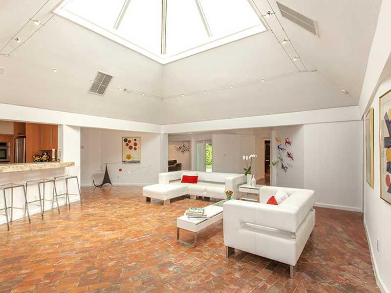 Located in the gated community of Sans Souci, this 3,710 SF residence has been designed by award-winning architect, Kenneth Treister. Updated in 2005, the home offers a wealth of architectural details incl. a colossal pyramid-shaped skylight over a centra l great room, allowing natural light to bathe the home in a soft glow. Curved walls, unique tiles, and concrete & brick flooring add to its distinctive design. 5 BRs, 4BAs + maid's rm, priv. rear yard & grade A schools make this a perfect family home.