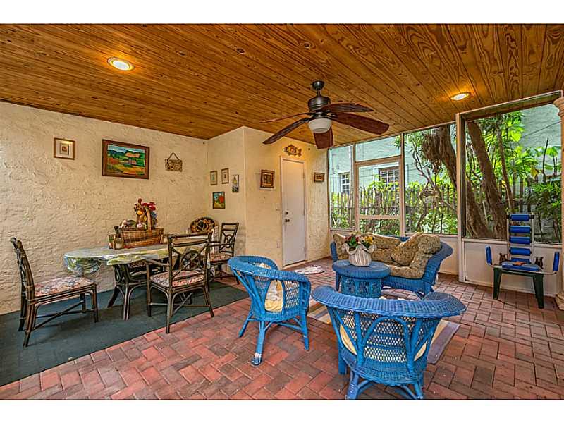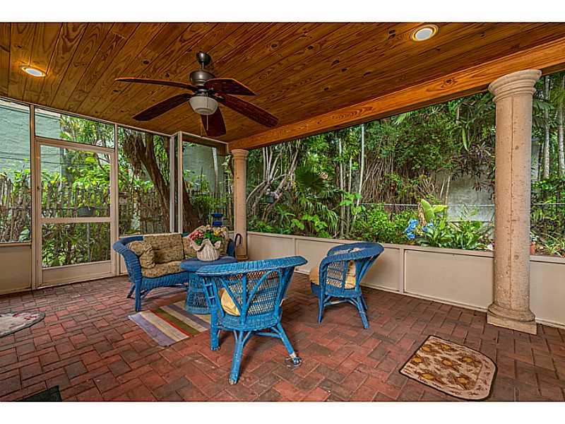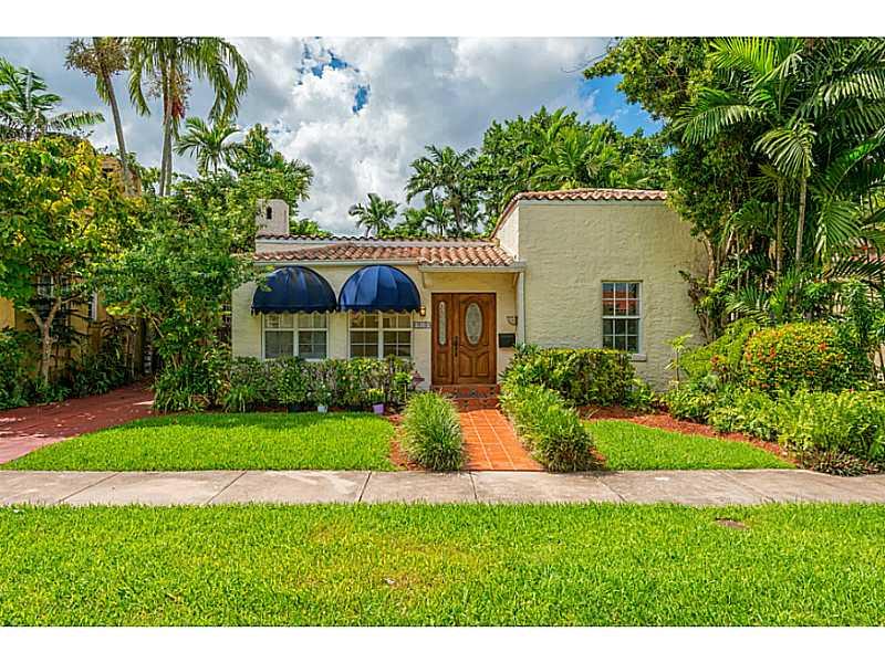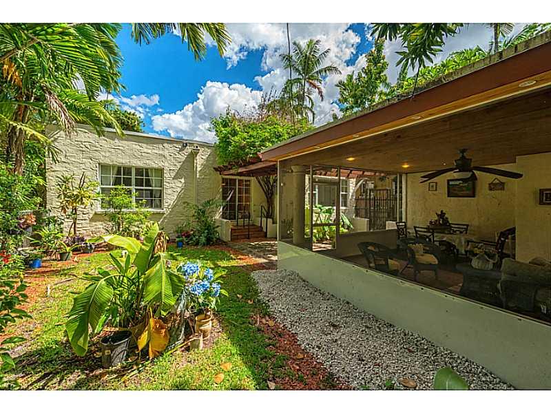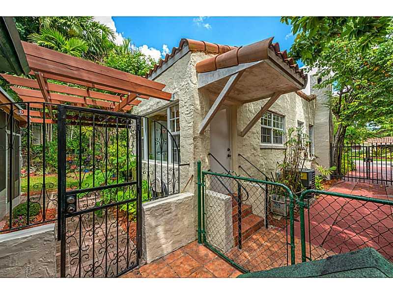 Beautiful Old Spanish home in Coral Gables. This upgraded, well maintained 2 bed/1 bath home boasts hurricane impact windows/doors, gorgeous original wood floors, fireplace, new bathroom & kitchen appls. The home welcomes you through a tiled foyer w/Fren ch doors & lots of windows making it very bright, high ceilings make it feel spacious. Enjoy the tranquil garden from the covered/screened "outdoor living area" with a 2cnd full bath. Covered garage can be converted to 3rd bed. This home is a must see!