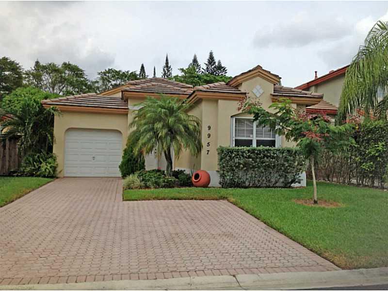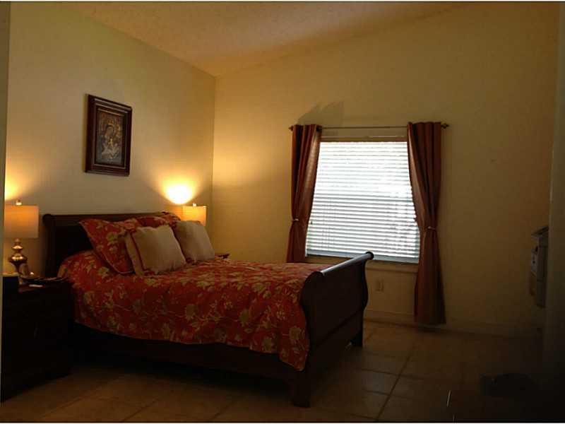 Great one story home kept in perfect condition. Fully tiled, split bedroom floor plan, remodeled bathrooms, high ceilings, totally remodeled kitchen with beautiful appliances, spacious family room, paved side yard ideal for entertaining or barbeque, acco rdion shutters, laundry room and 1 car garage.Low maintenance fee,located in excellent community and priced to sell fast. A pleasure to show.