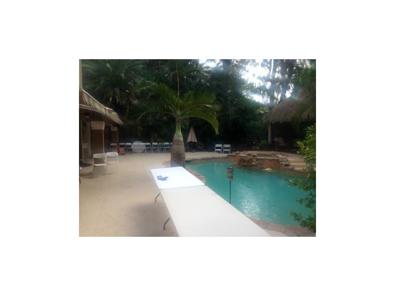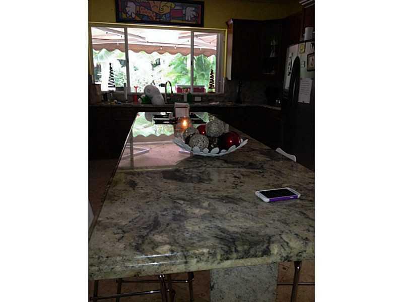 A Paradise with large kitchen, granite counter tops, gas range and more, overlooking a heated pool w/two waterfall and built in Jacuzzi. A tikki area with an additional half bathroom. Formal living room w/ wood fireplace, Marble floor throughout. Top Flo or has private Master bedroom with sitting area and built in bar. House needs some work, but a good investment for the right family.