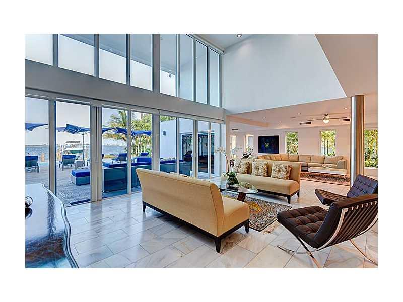Epic contemporary masterpiece offers uninterrupted bay views w 80+ ft of water and private dock w 2 boat lifts. Modern design features custom stainless steel staircase, Spanish marble floors and soaring floor-to-ceiling impact glass which blends flawlessl y w ext infinity pool and summer kitchen. The "Bayview house" was completely remodled in 2008 w energy efficiency in mind, has 6BRs, 5.5BA, security cameras, generator, 3-car garage, & over 5100sqft of liv. area. Miami lifestyle with understated elegance!