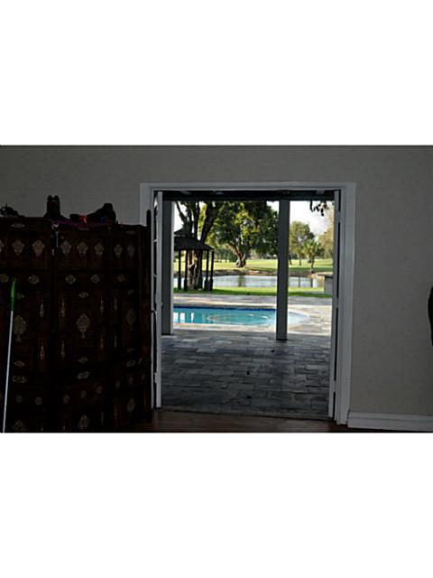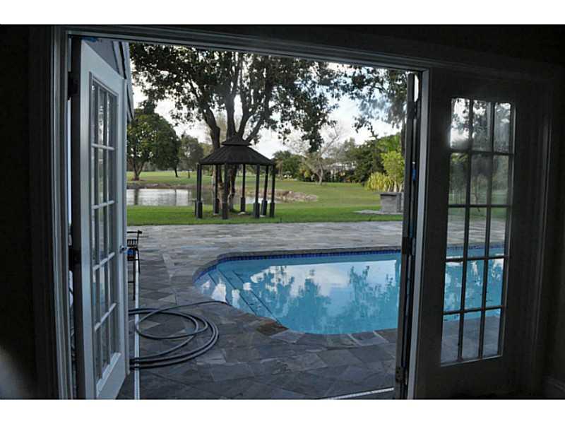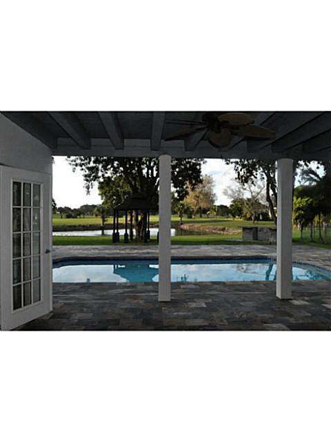 Gorgeous House with Lots of Open Space, Beautiful Travertine stone floors across the house. Laminate floor in Bedrooms. Plenty of Windows and French Doors to what is a Breath taking view to the Pool, Lake and Golf Course adjacent to 3rd Hole. Exterior Bui ld BBQ Pit. Original built in Coral Fire Place. Ready for a New Custom Kitchen to be Installed. No Membership Required. Lots of Character, Dream Home!