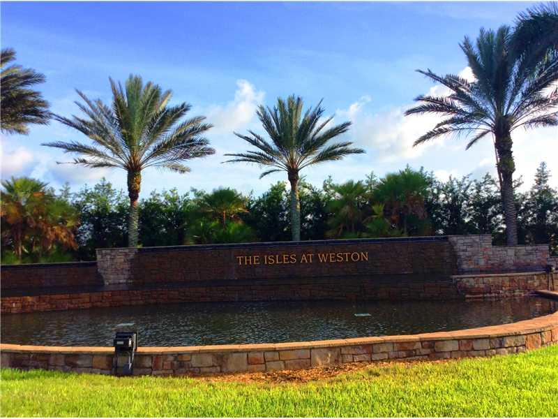 GREAT OPPORTUNITY TO MOVE IN BEAUTIFUL ISLES AT WESTON, GUARD GATED COMMUNITY WITH 24/7 SECURITY, ONE STORY HOME, 3 BEDS, 2 BATHROOM, BEAUTIFUL HIGH CEILING HOME, WITH PARTIAL LAKE VIEW, SPACIOUS MASTER BEDROOM W/ GORGEOUS MARTER BATH, GREAT KITCHEN, NE UTRAL CARPET, AND NEUTRAL WALL COLOR, TROPICAL LANDSCAPING . EXTENDED LOT FOR ENJOYMENT AND ROOM FOR A POOL. MAINTENANCE INCLUDES ALARM, INTERNET, CABLE. DO NOT BE THE LAST!!!!!